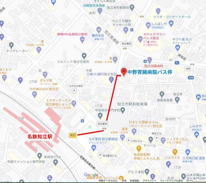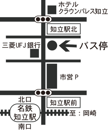 知立駅前通りの三菱UFJ銀行前より、病院マイクロバスを運行しています。無料でご利用いただけます。病院休診日は運休します。